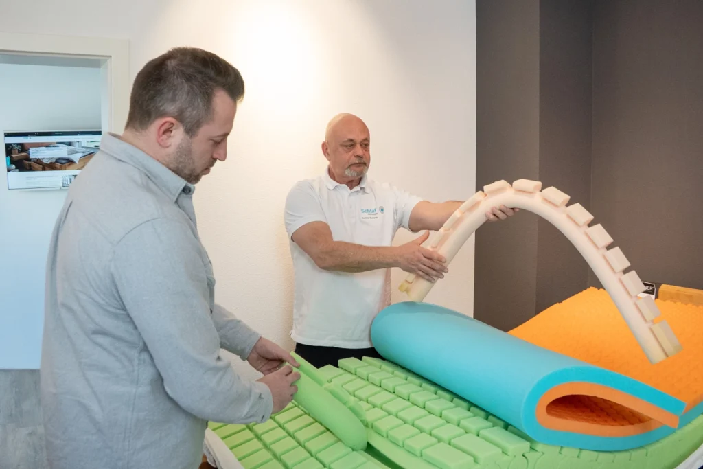 Jeder Mensch schläft anders. Deshalb finden Sie bei schlafconcept.de keine Matratze von der Stange, sondern individuell angepasste Schlafsysteme. Mit unserem Fachwissen und Ihrer persönlichen Liegeberatung entwickeln wir gemeinsam die perfekte Grundlage für gesunden und erholsamen Schlaf – abgestimmt auf Ihren Körper und Ihre Bedürfnisse.