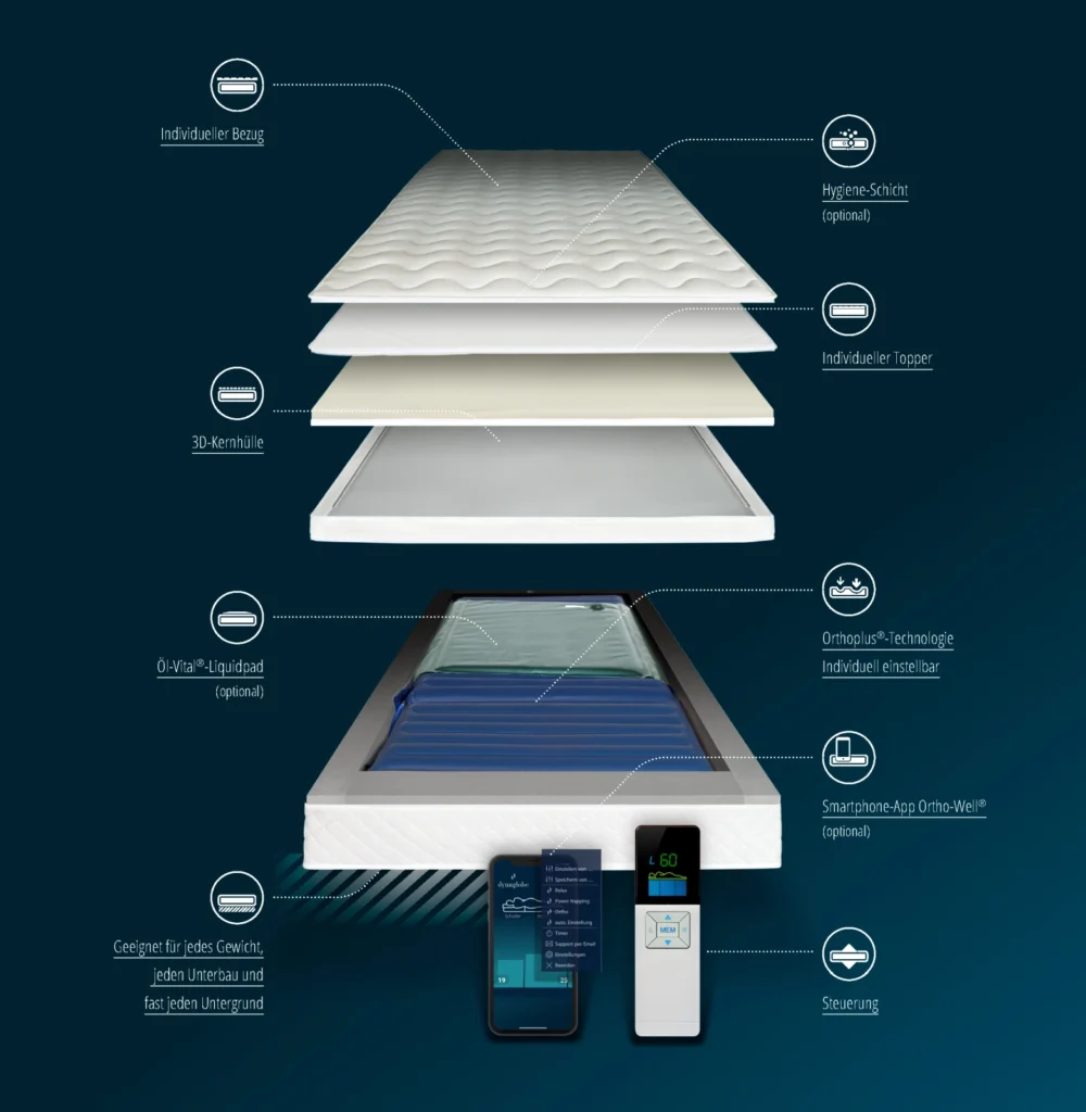 Erleben Sie Schlafkomfort neu definiert Ein Luftkammerbettsystem vereint Flexibilität, Ergonomie und modernste Technologie, um Ihnen ein Schlaferlebnis zu bieten, das sich ganz nach Ihnen richtet.