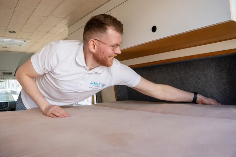 - Maßanfertigung für jede Form: Ob rund, schräg oder speziell geschnitten – wir fertigen Ihre Matratze passgenau für jedes Fahrzeugbett.